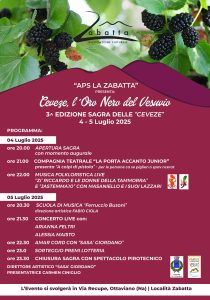 Programma Ufficiale 2025 della Sagra delle “Ceveze” Presenterà le due serate la nostra Carmen Ciniglio, madrina dell’evento e voce della APS “La Zabatta”, dopo i